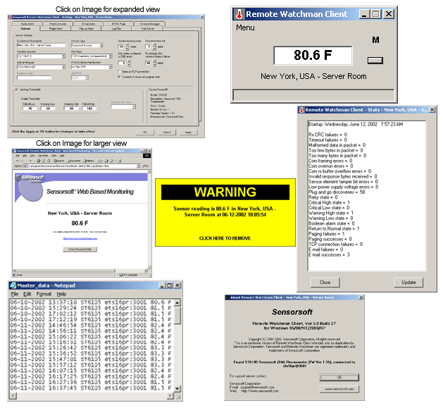 - Monitor up to sixteen (16) different Sensorsoft devices on serial ports